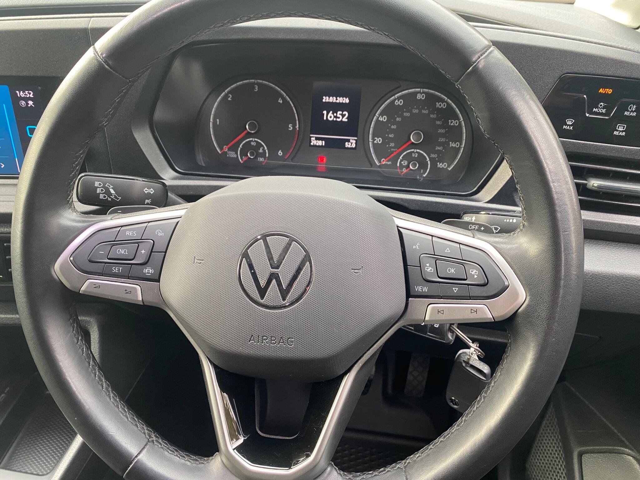 This 2024 Volkswagen Caddy is a standout choice, having been owned by just one person and boasting a full service history. This Commerce Plus SWB Euro 6 model features a 2.0 litre diesel engine and comes with the remainder of its 14 month warranty. It has a clear vehicle history check and its last service was completed on 2nd December 2025 at 23,661 miles. Notable features include rear parking sensors with parking assistance, manual air conditioning in the cab, and separate daytime running lights with automatic headlight control.
